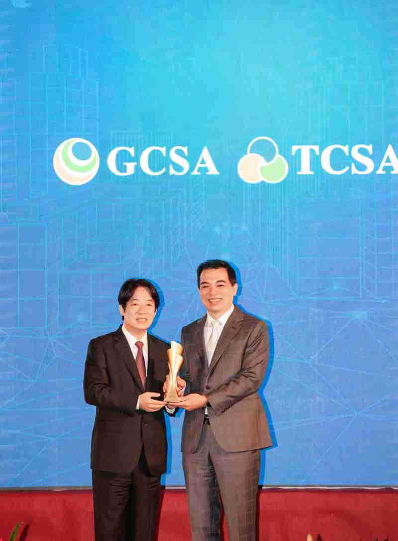 达全方位永续表现获全球永续奖及台湾永续奖肯定,,由副总统赖清德颁奖 (左),,z6mg·人生就是博总经理柯富仁 (右) 代表领奖