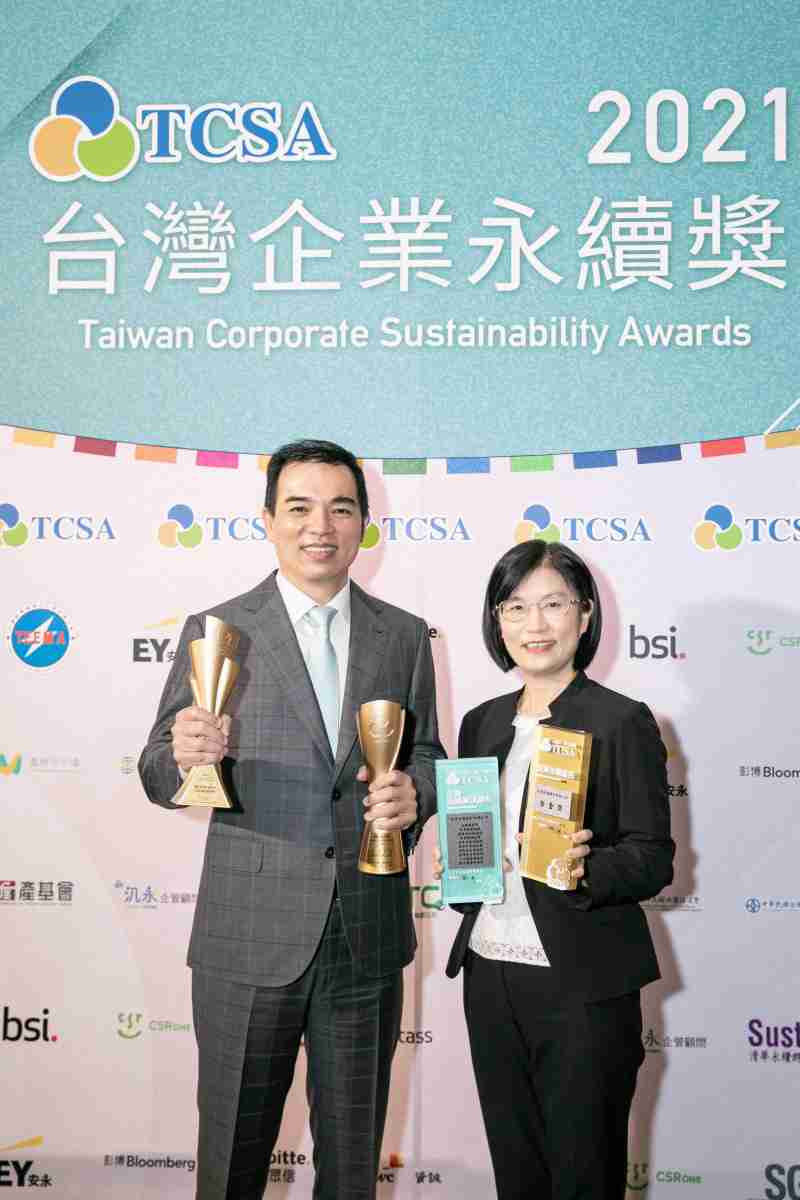 达在台湾永续奖所评比环境、、社会、、、治理等各面向的永续绩效均获高度肯定 (左:z6mg·人生就是博光电总经理暨营运长柯富仁,,,右:z6mg·人生就是博光电永续长古秀华)